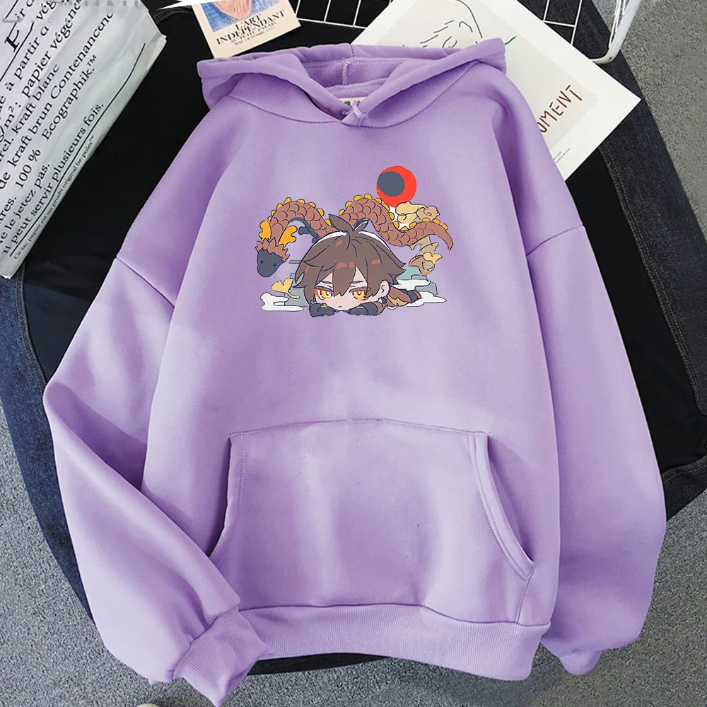 Толстовка с капюшоном и принтом японского аниме Genshin Impact ZhongLi, уличная одежда большого размера для мужчин и женщин, свитшоты, уличная одежда для мальчиков, одежда в стиле хип-хоп