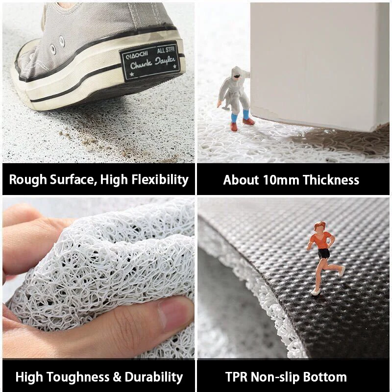 Коврик из ПВХ с шелковой петлей может предотвратить скольжение и защитить вашу безопасность, он может поглощать влагу из вашей обуви, чтобы сделать пол чистым и сухим, а также очистить от пыли, грязи, снега, И т. д.