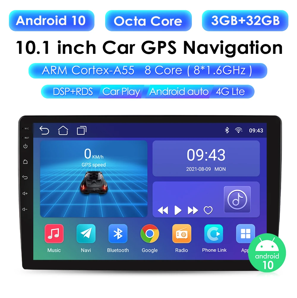 Универсальный Автомобильный мультимедийный плеер, Android 10, 2 Din, 9 дюймов, 10,1 дюйма, Carplay, GPS-навигация, автомобильная аудиосистема, стерео головное устройство