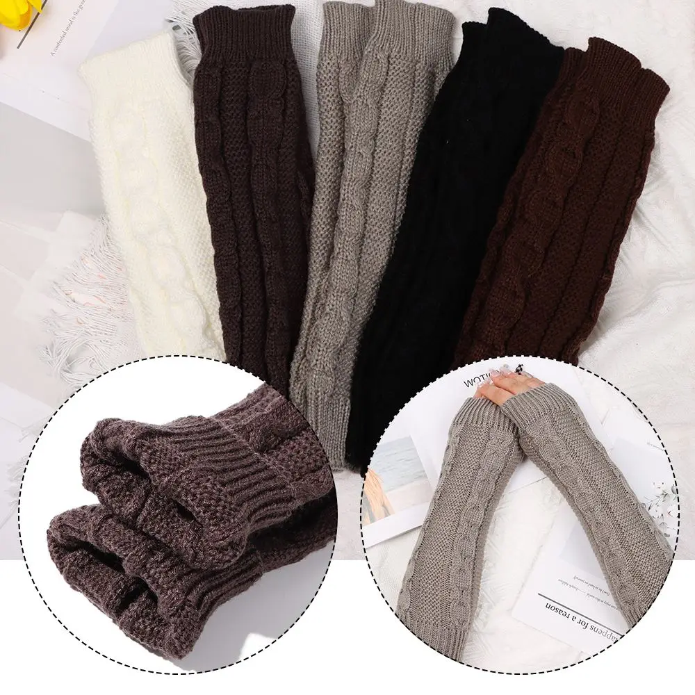 Модные зимние длинные перчатки без пальцев, Повседневные вязаные рукавицы, женские теплые перчатки на запястье, вязаные рукава, вязаные локоть перчатки