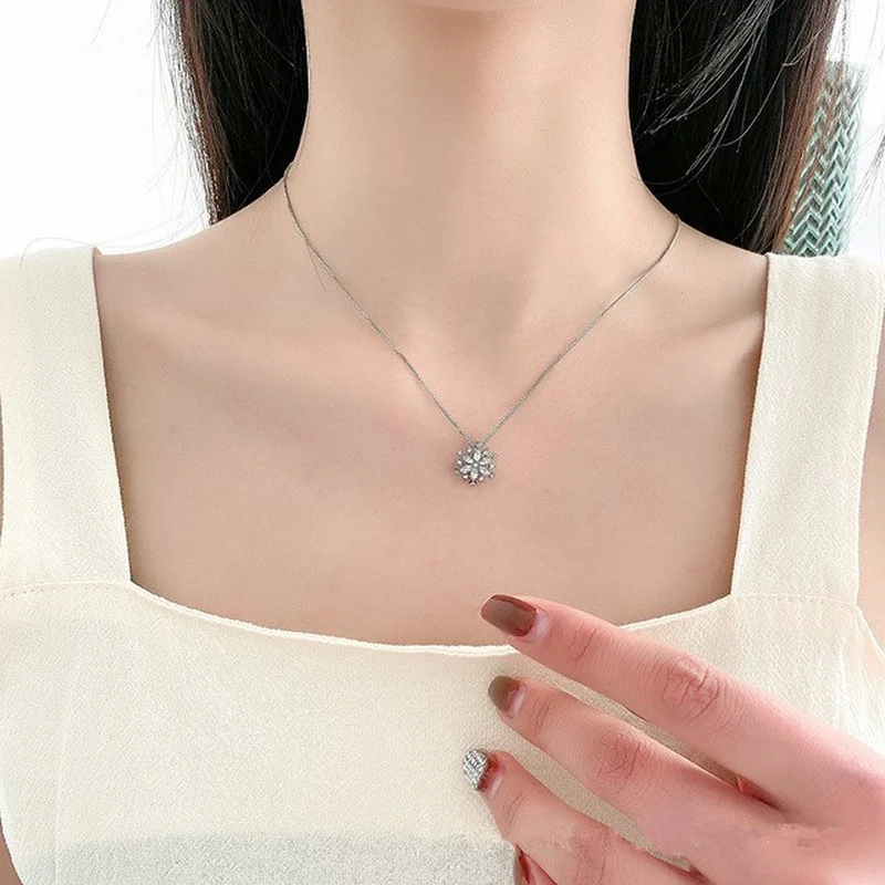 Женское ожерелье с подвеской в виде снежинки с кристаллами