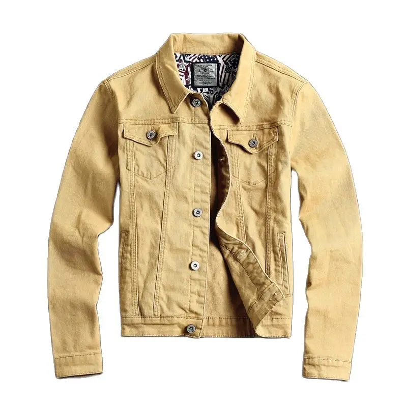 Мужская джинсовая куртка, повседневная приталенная куртка цвета хаки, черного, армейского, зеленого и красного цветов, 2021