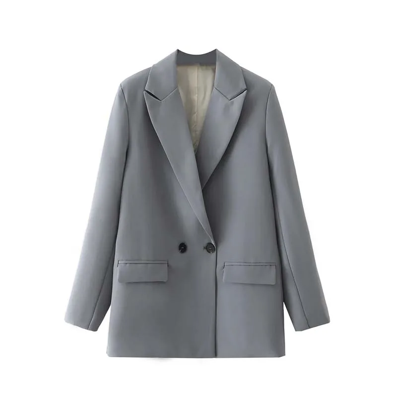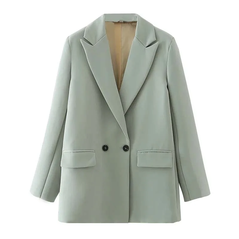 Женский двубортный блейзер с длинным рукавом, свободного покроя