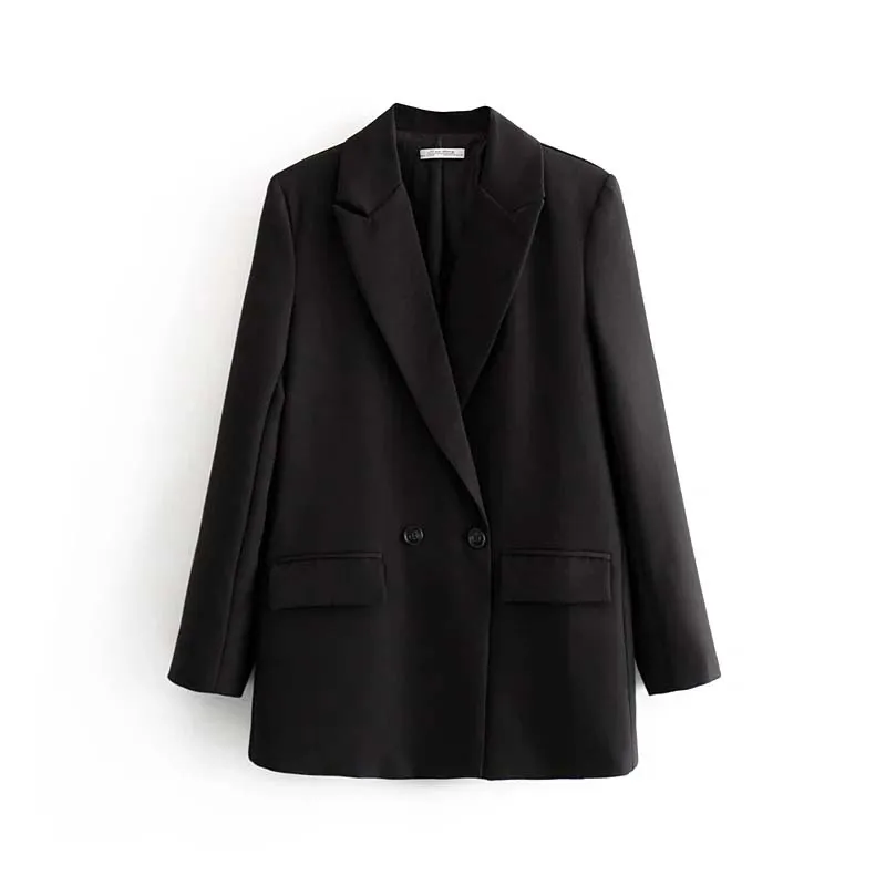 Женский офисный двубортный Блейзер ZBZA, винтажное пальто с отложным воротником и длинным рукавом, верхняя одежда, топы