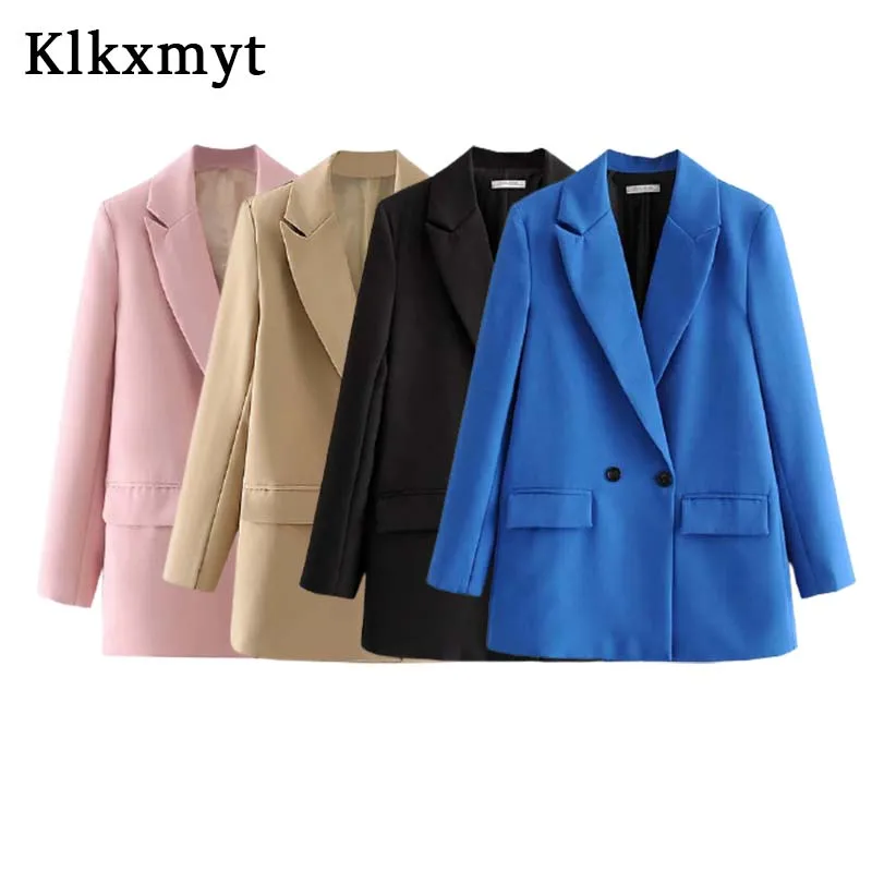 Однотонный Повседневный блейзер для офисной леди 2021, двубортный м...