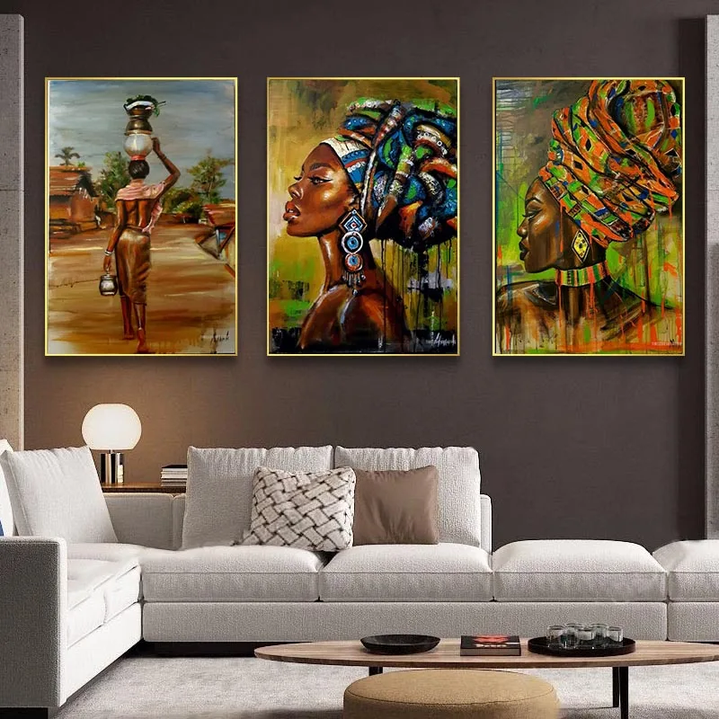 Картина на холсте из африканских черных женщин, настенный плакат, С...