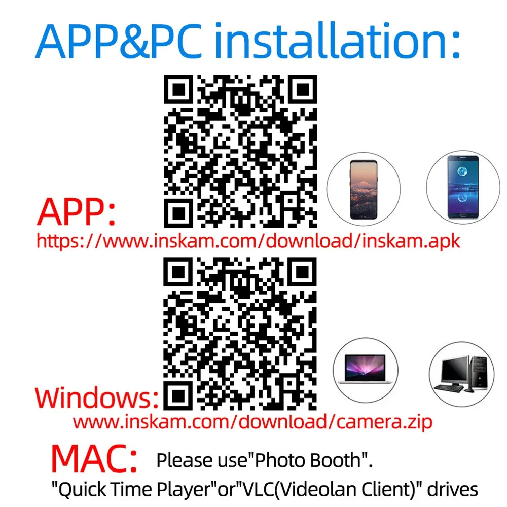 Как использовать на мобильном телефоне Android①Скачать приложение: Найдите «inskam»Приложение в Google Play Store, или сканирование qr-кода ниже, или введите URL:Https://www.inskam.com/download/inskam.apk②Установите приложение на телефон.③ Подключите продукт к телефону, затем вы можете использовать этот продукт.