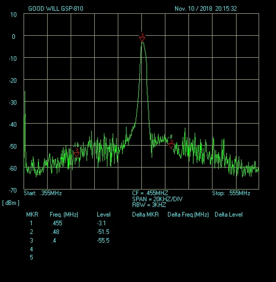 10,7 МГц керамический фильтр Амплитудная кривая частоты