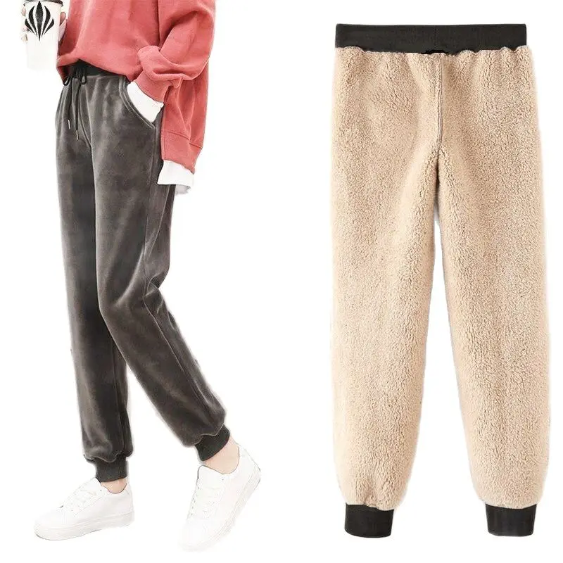 Штаны женские зимние кашемировые, с мехом ягненка, теплые, на флисе...