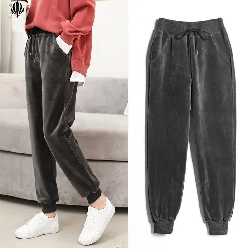 Женские бархатные спортивные брюки, зимние теплые шаровары, повседн...