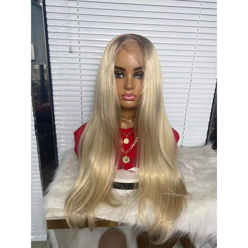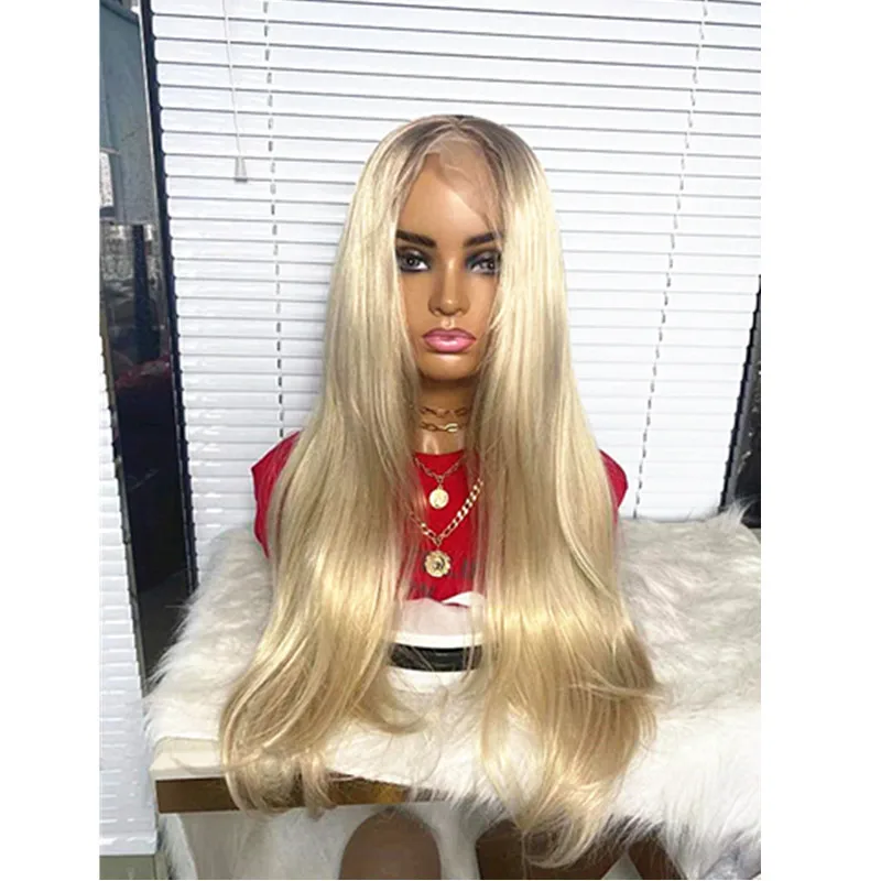 26 дюймов 180% Плотность Омбре блонд длинный прямой синтетический кружевной передний парик без клея 13x4 кружевные парики для женщин с детскими волосами ежедневный парик