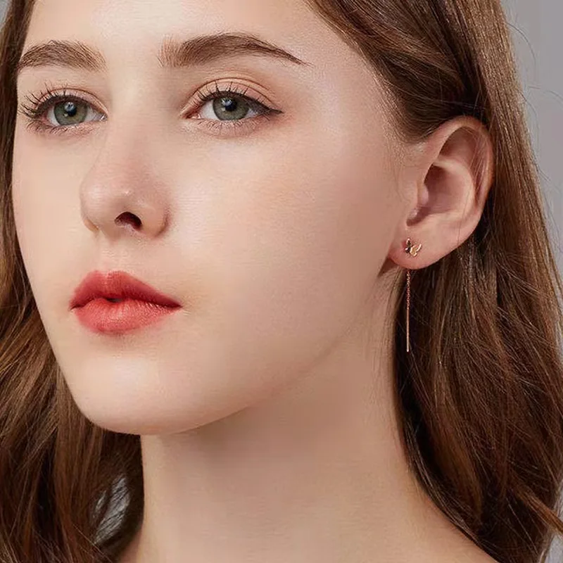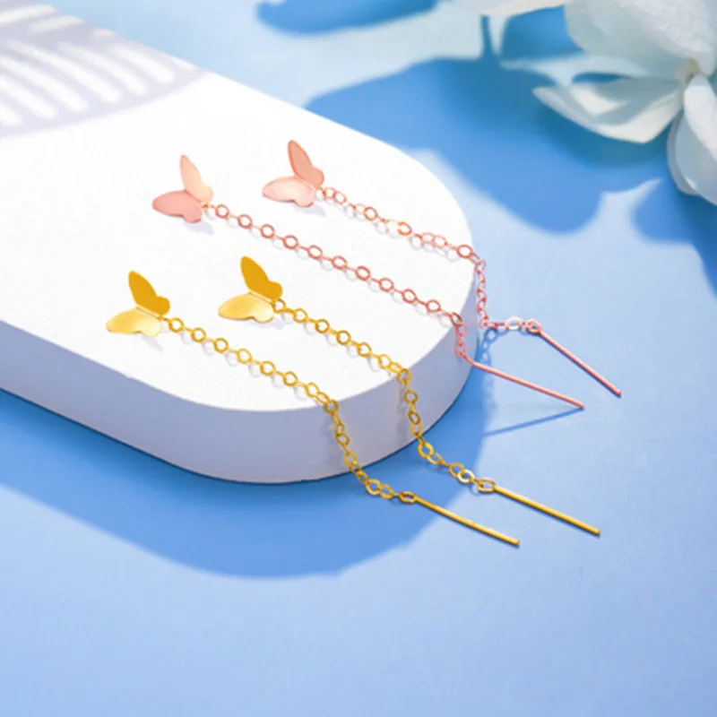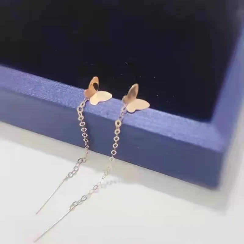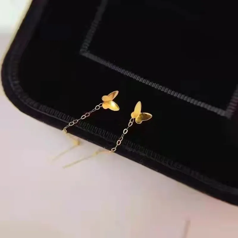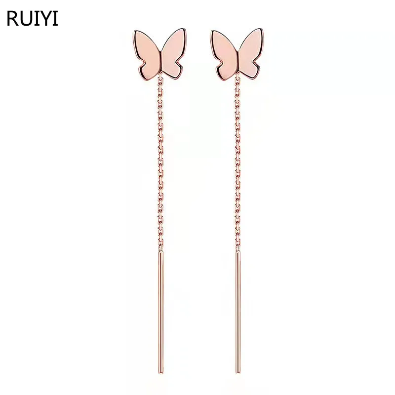 Серьги RUIYI из настоящего 18-каратного золота с бабочкой и кисточкой, проволока для ушей, простые золотые ювелирные изделия, женские изысканные украшения