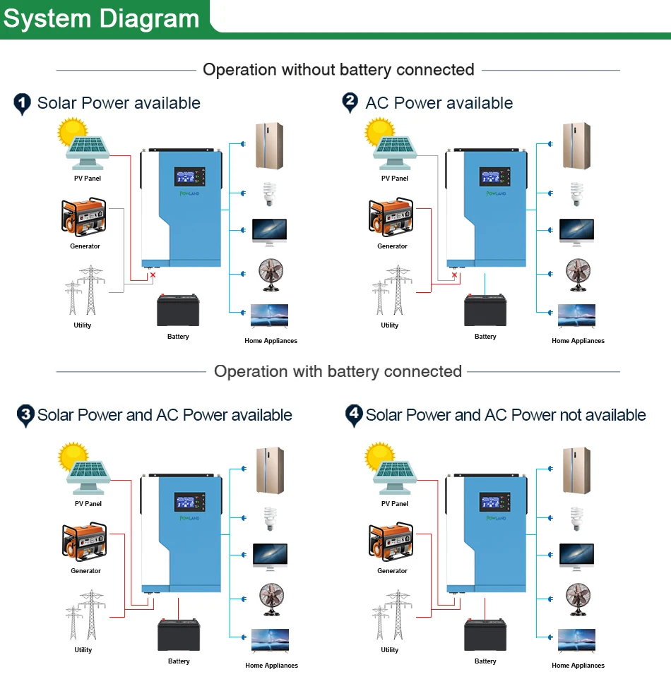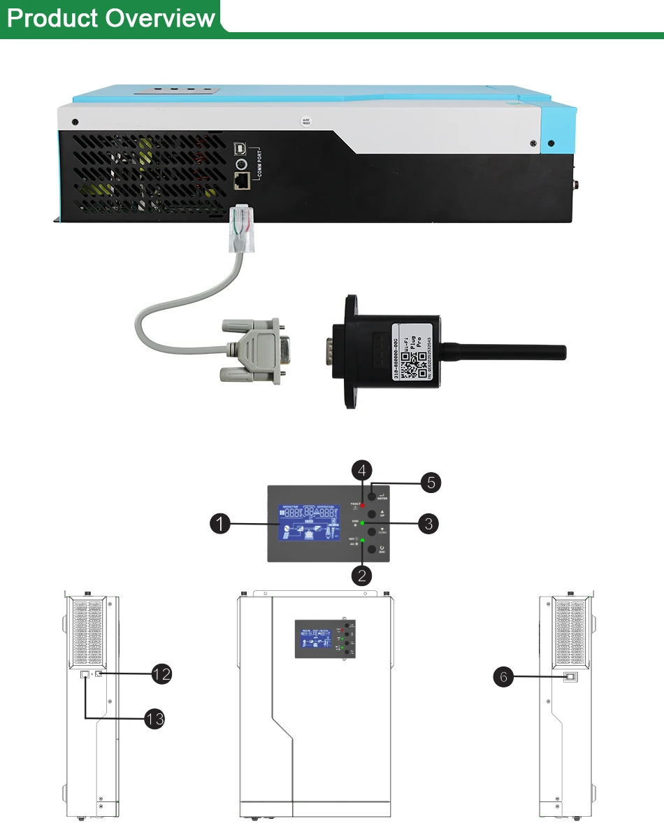 Особенности:Инвертор чистой синусоидальной волны6,0 кВт со слежением за максимальной точкой мощностиСолнечное зарядное устройство с максимальным зарядным током 100A120-500 в широкий PV входЛитиевая батареяНе может работать без аккумулятораГенерирует энергию от PV непосредственно для подачи нагрузки, даже без батареиЭффективность PV до AC намного вышеInperut 5500 Вт Чистый инвертор с wifi mpptБесплатные возвраты:
