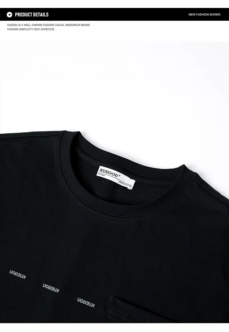 Мужская футболка с коротким рукавом KUEGOU, черная свободная футбол...