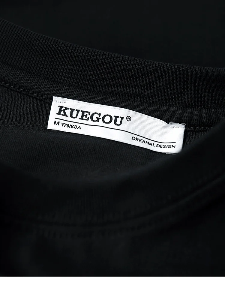 Мужская свободная футболка KUEGOU, черная футболка с коротким рукав...