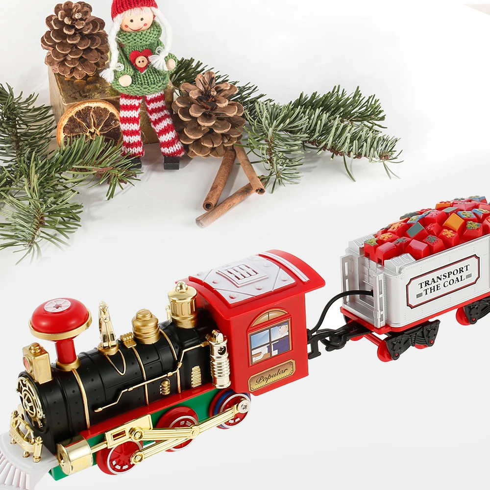Рождественский поезд, электрические игрушки, украшение для рождественской елки, рамка для поезда, железнодорожный автомобиль со звуком светильник, рельсовый автомобиль, рождественские подарки