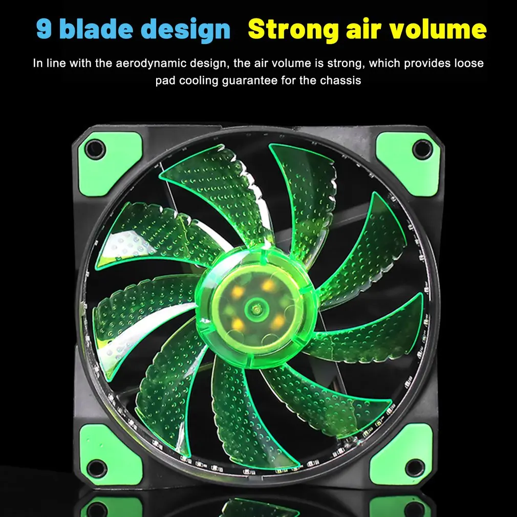 Особенности: 1. Оснащен 15 Светодиодный светильник-полосками, принося магические и крутые эффекты. 2. Уникальные ветро-направляющие канавки и трехмерные выпуклые лопасти вентилятора обеспечивают более мощный объем воздуха. 3. Центральная ось имеет обтекаемую форму, которая имеет лучший эффект рассеивания тепла. Описание: Вентилятор охлаждения использует гидравлические подшипники, чтобы обеспечить более длительный срок службы, более тихую среду использования, более гибкую конфигурацию интерфейсов и черную волоконную трубку для обертывания провода. Характеристики: Размер продукта: 120X120X25mn Тип подшипника: гидравлический Номинальное напряжение: 12 В постоянного тока Скорость вентилятора: 1100 ОБ/мин ± 10% Значение шума: 23.5DBA Объем воздуха: 36.0CFN Средний срок службы: 20000 часов Посылка включает в себя: 1 * чехол для компьютера охлаждающий вентилятор