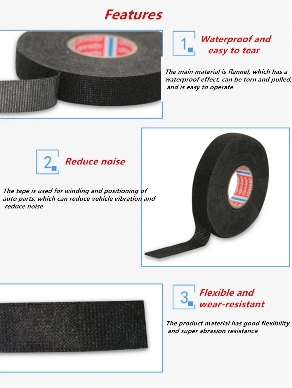 Название: Автомобильная Лента для жгута проводовРазмер: 15 м x 9 мм/15 мм/19 мм/25 ммМатериал: нескользящий бархатИспользование: для автомобильной проводки, окна автомобиля или двери шумоподавление, автомобильный светильник, оберткаФункция: шумоподавление и вибрация, изоляция и замедлительная лентаПосылка:1xtape
