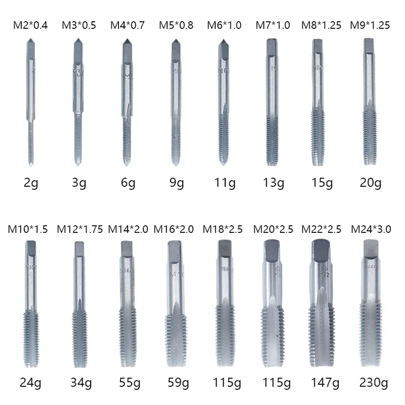 Есть всего 7 штук метчиков разных размеров от М3 до M12, которые можно использовать для нарезания различных нитей.