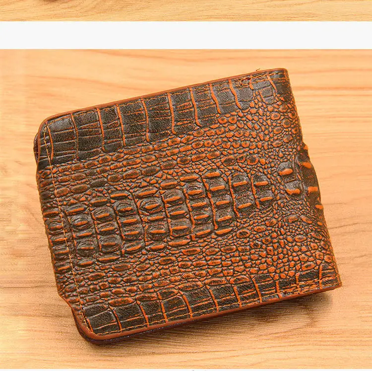 Мужской кошелек из натуральной кожи, короткий бумажник, винтажный крокодиловый