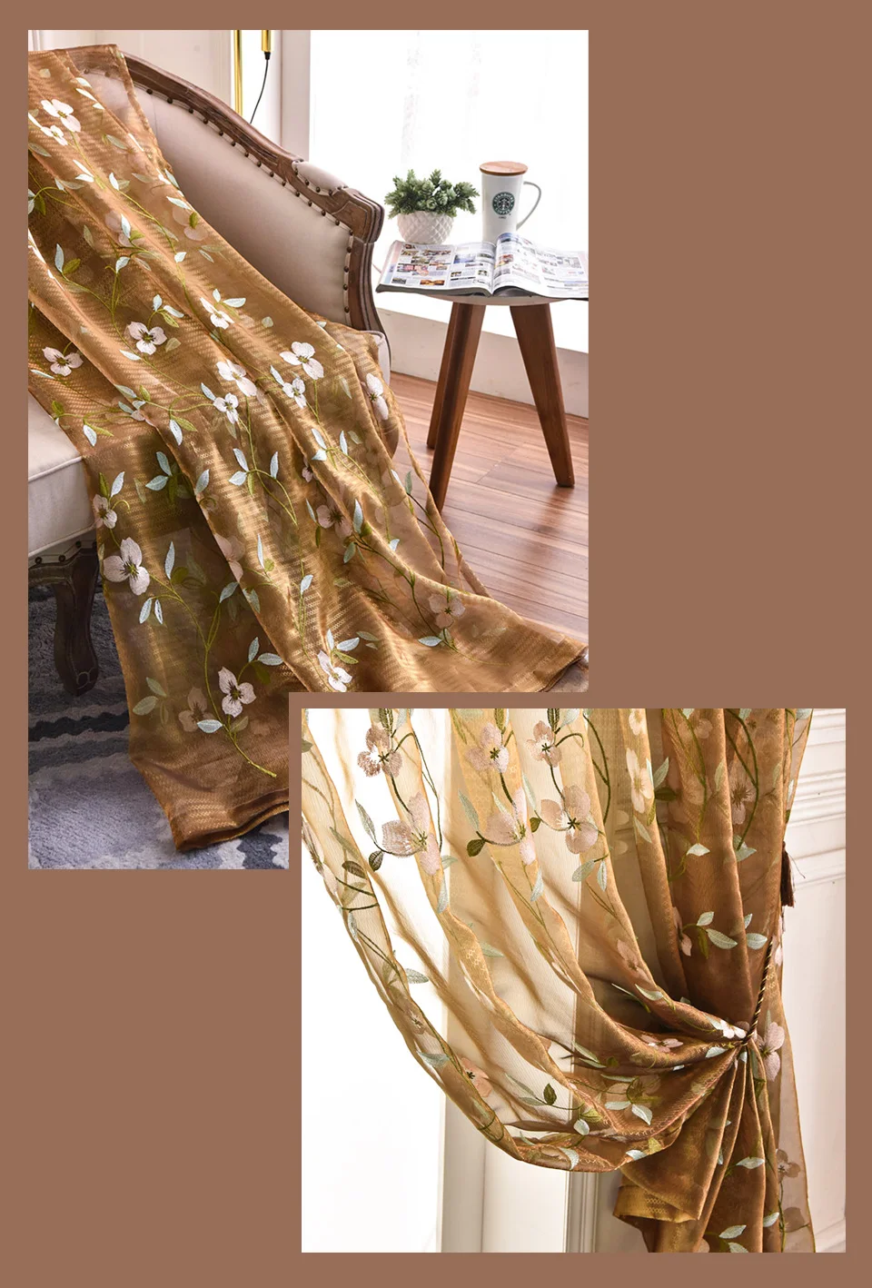 Вышитые кофейные фотообои для спальни пасторальная Прозрачная Вуаль занавески для гостиной кухни Оконные Занавески