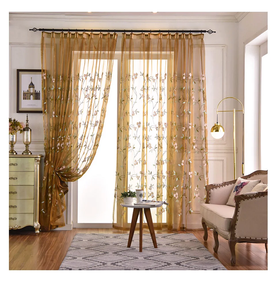 Тюлевые занавески с цветочной вышивкой в американском стиле для гос...