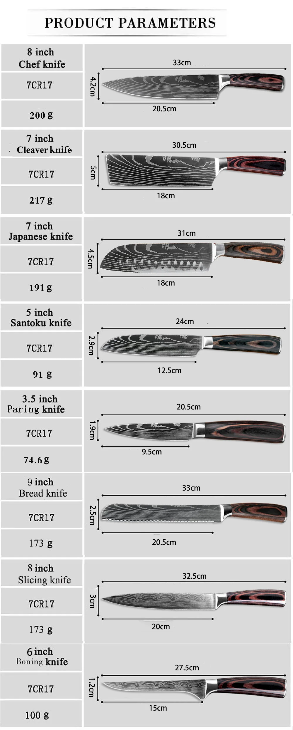 Набор кухонных ножей 7CR17 440C, профессиональные японские ножи шеф-повара из высокоуглеродистой нержавеющей стали, набор ножей с имитацией Дамасского узора