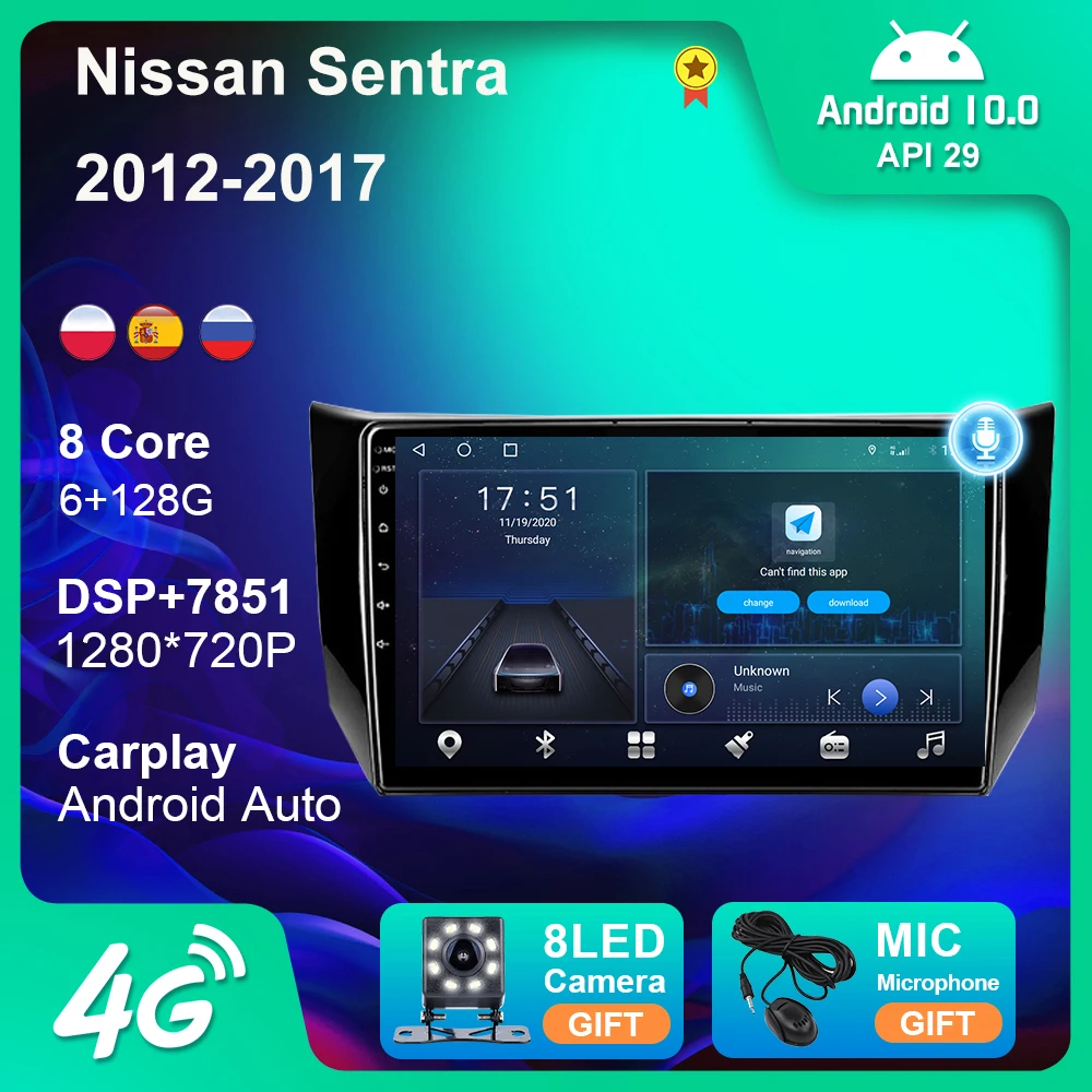 Android 10 для Nissan Sentra 2012-2017 автомобильное радио, мультимедийный видеоплеер, навигация GPS Carplay USB Android автомобильный без DVD-плеера