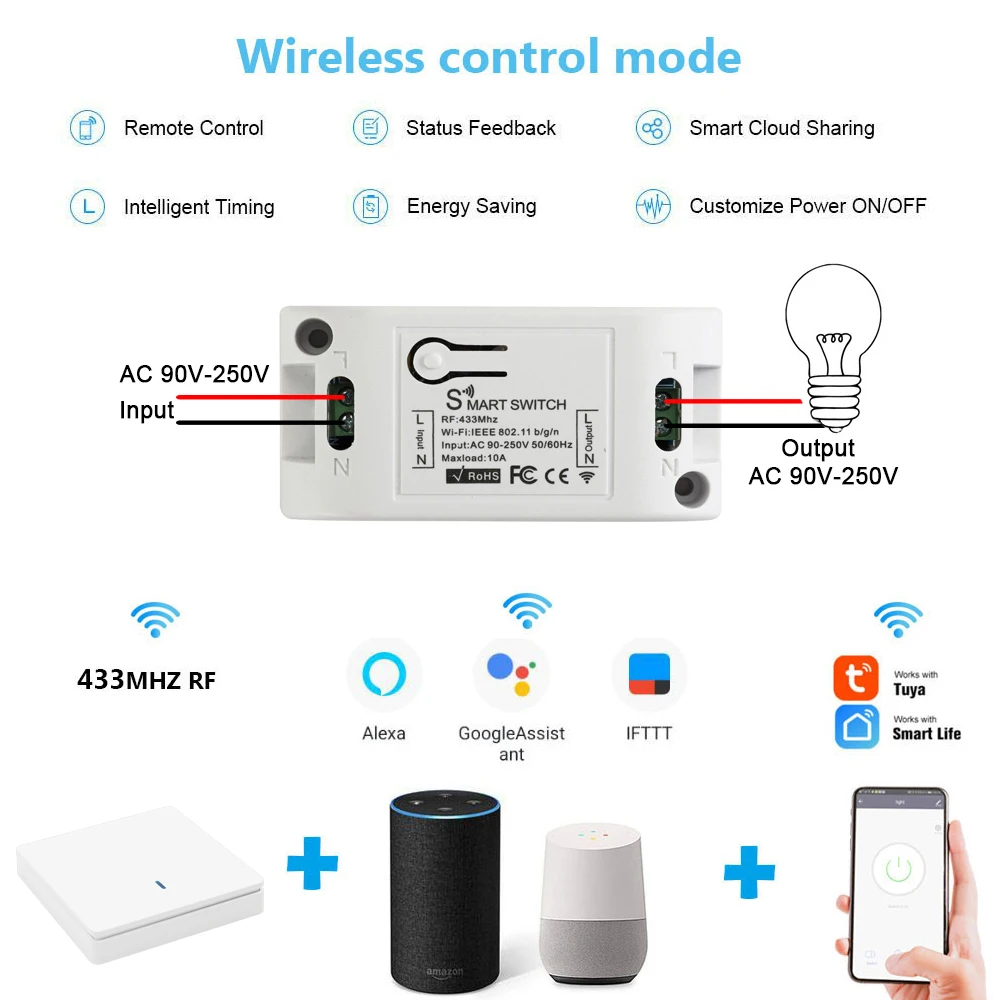 ХарактеристикиWIFI Smart Switch 433Mhz 2200W Wall Remote Control Switch Wireless
