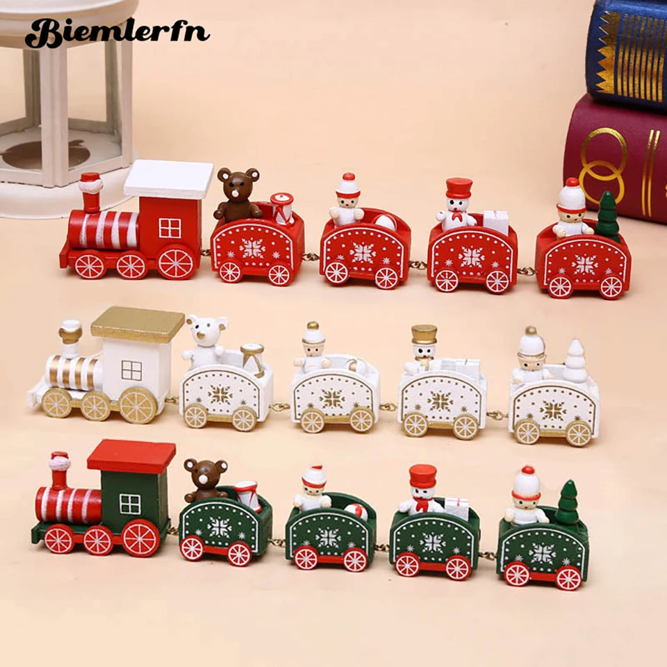 BIEMLERFN Рождество 5 секций деревянный поезд Рождественское украшение для дома 2022 новый год Счастливого Рождества Санта Клауса подарки