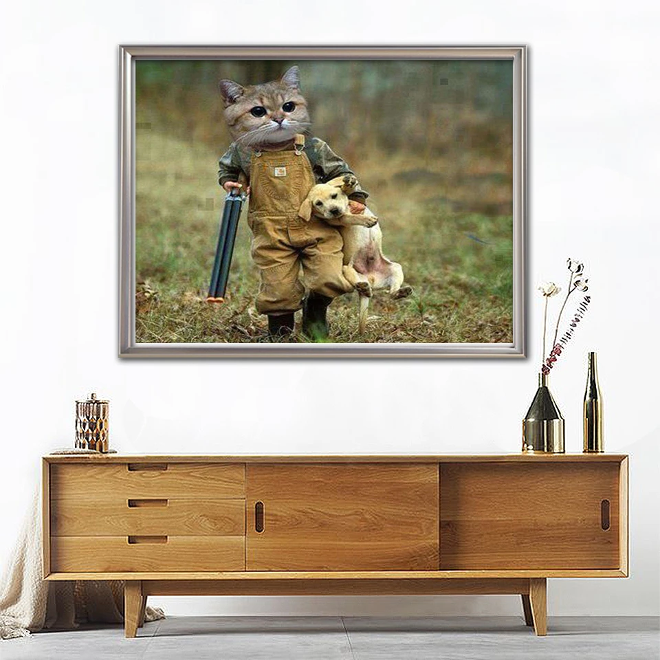 Алмазная живопись с изображением кота и алмазная вышивка собаки, кв...