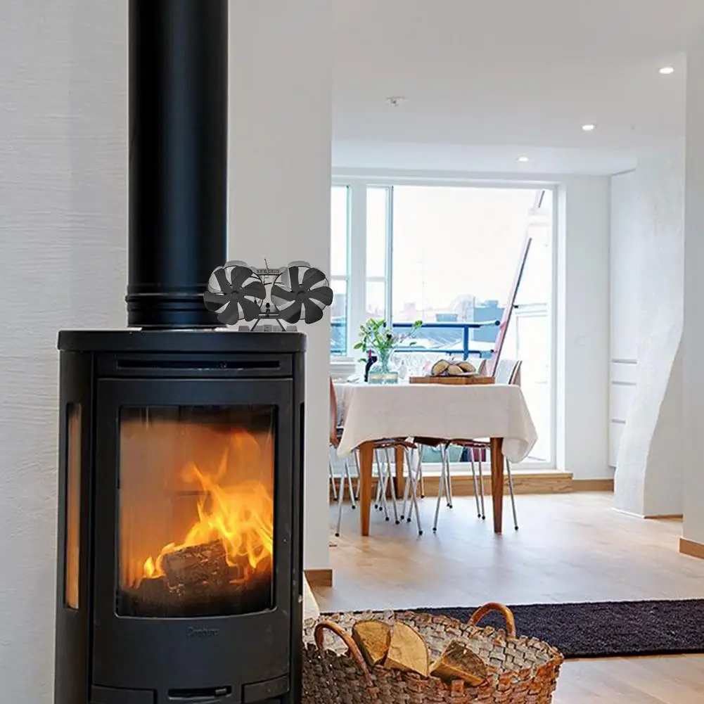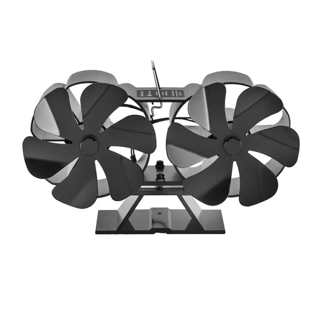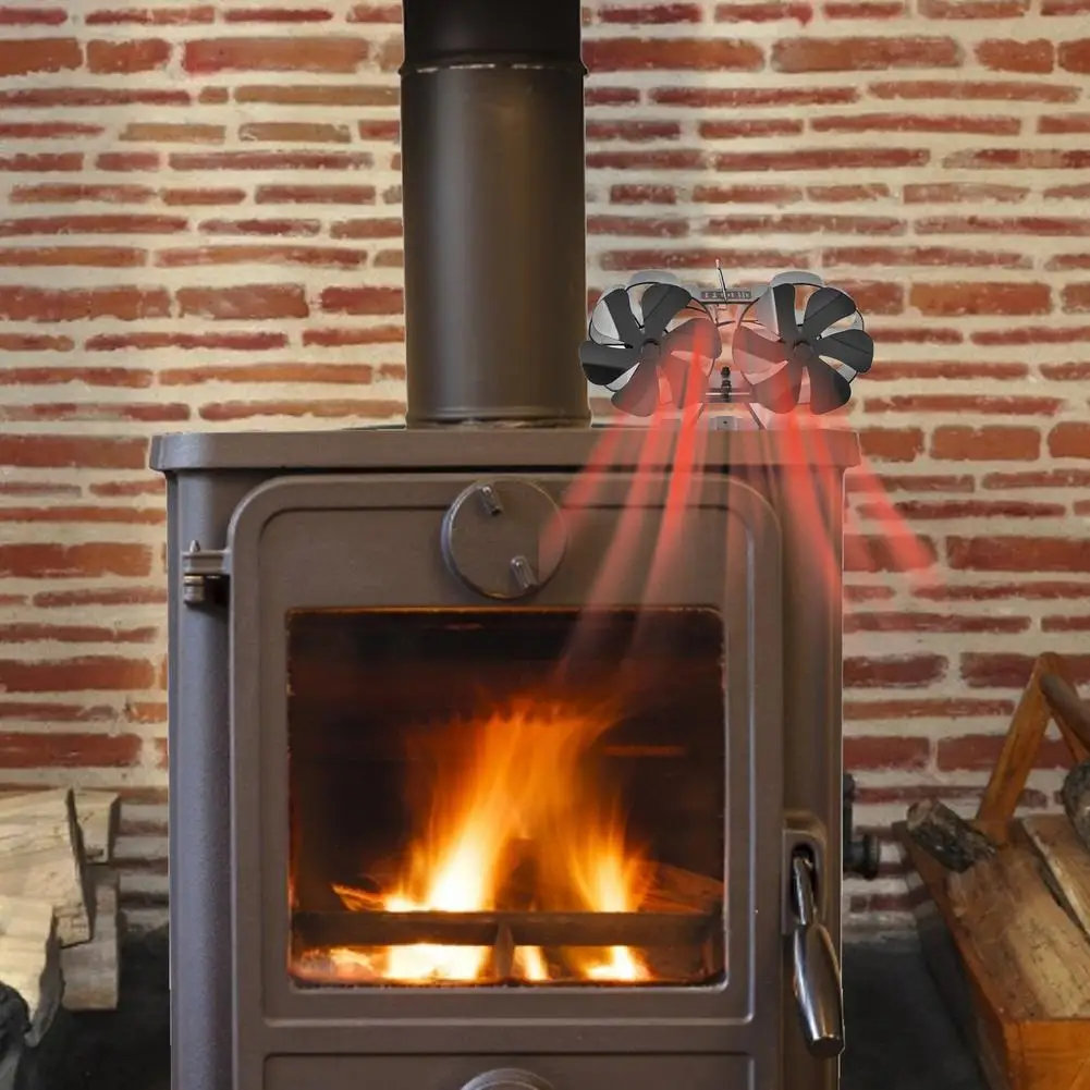 Двойная головка, 12 лопастей, самонагревающийся вентилятор для плиты, алюминиевый бесшумный для деревянной горелки, бесшумный, теплый, зимний