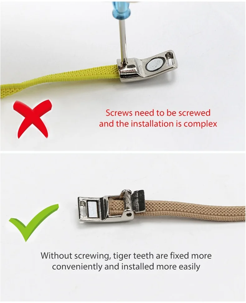 Works. Did not need to tie a knob on the laces as the locking mechanism cuts into the lace. Recommend burning the cut end as it won't hold otherwise. Magnets not too firm, able to detach using one hand. Package arrived quite fast in combined parcel (21 days after order placed).