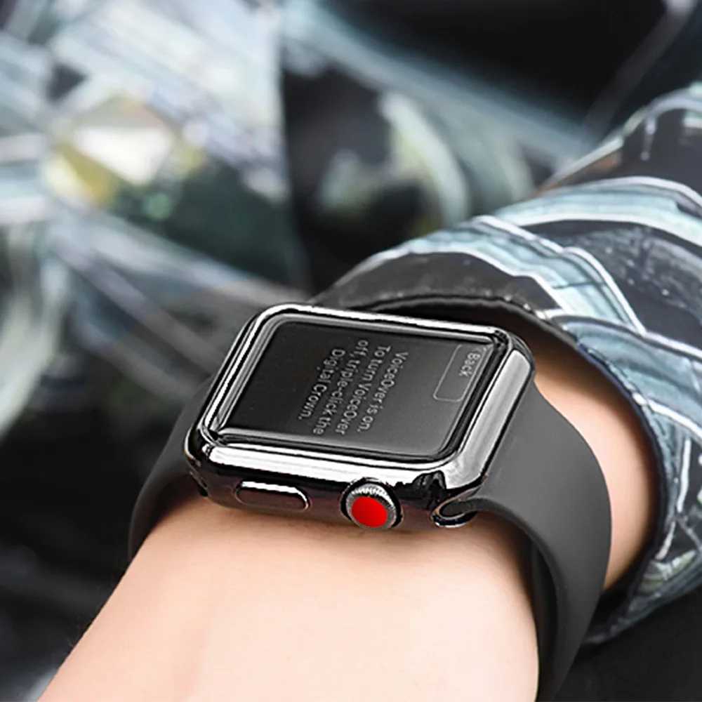 Чехол для Apple watch 5 4 3 2 1 42 мм 38 мм, Ультратонкий силиконовый чехол из ТПУ с металлическим покрытием, аксессуары для iWatch 6 44 мм 40 мм