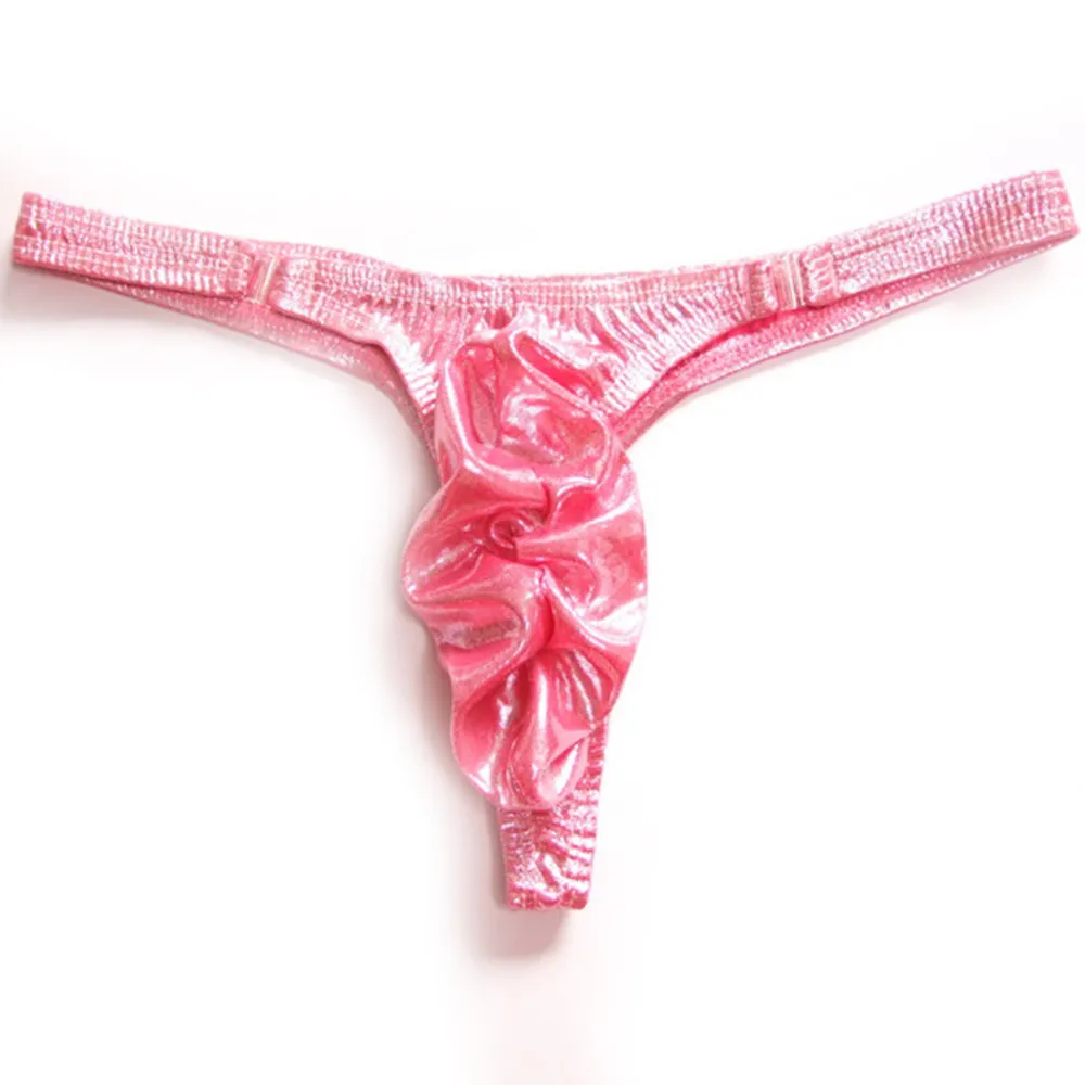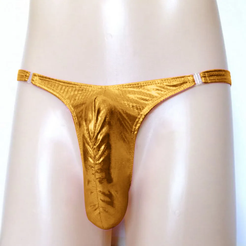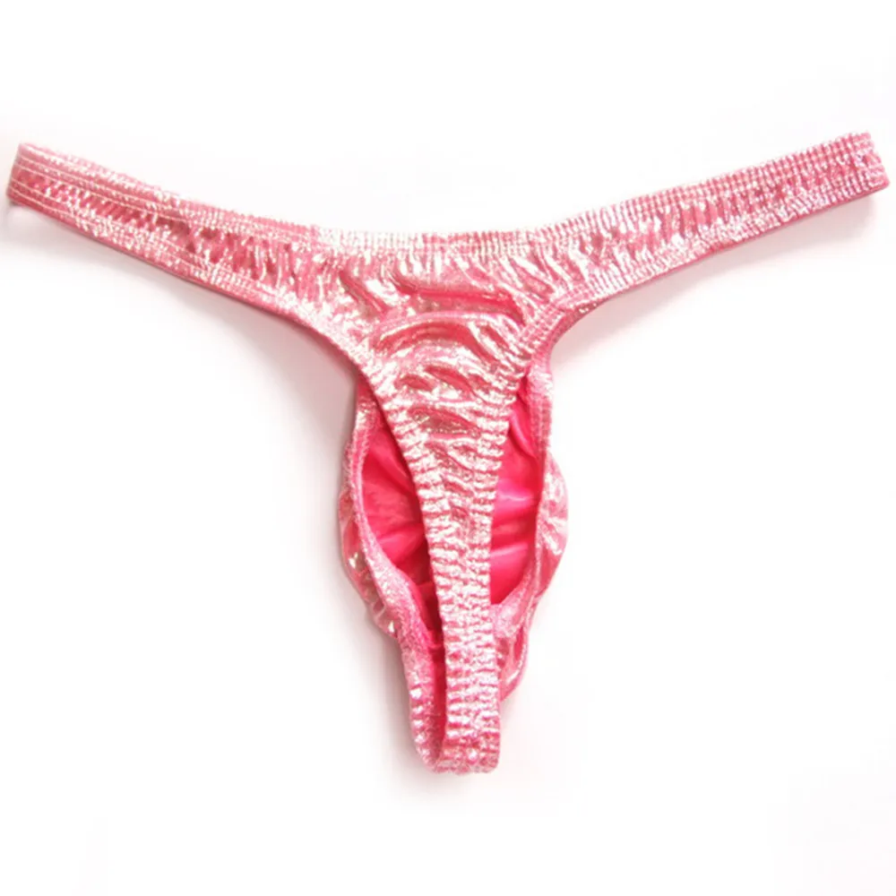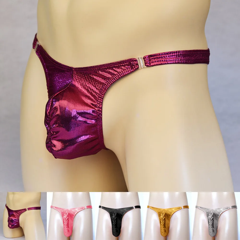 Блестящие мужские трусы мини-стринги, мужское нижнее белье с карманом для пениса, мужские сексуальные трусы для геев, Эротические трусики с Т-образным вырезом, мужские трусики