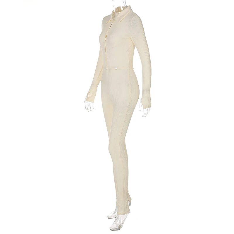 Комбинезон женский трикотажный, с длинным рукавом, на пуговицах