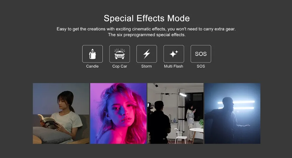 Трубные лампы имеют некоторые популярные спецэффекты, такие как шторм, свеча, вспышка, полиция и SOS.