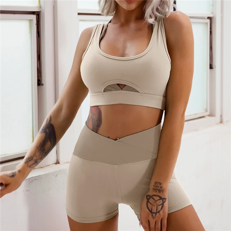 Комплект Спортивный женский из 2 предметов, бюстгальтер + шорты, нейлон