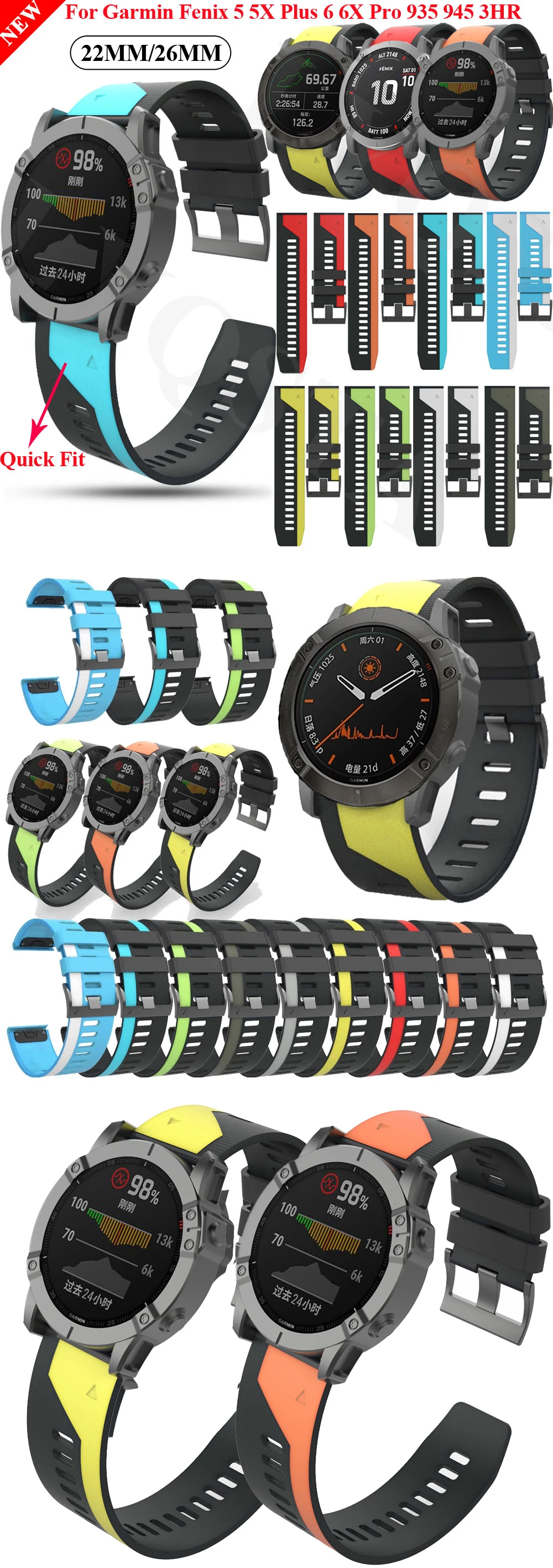 Ремешки для смарт-часов 22 26 мм для Garmin Fenix 6 6S 6X 5X 5 5S 3HR Forerunner 935 945 быстроразъемный ремешок силиконовый браслет