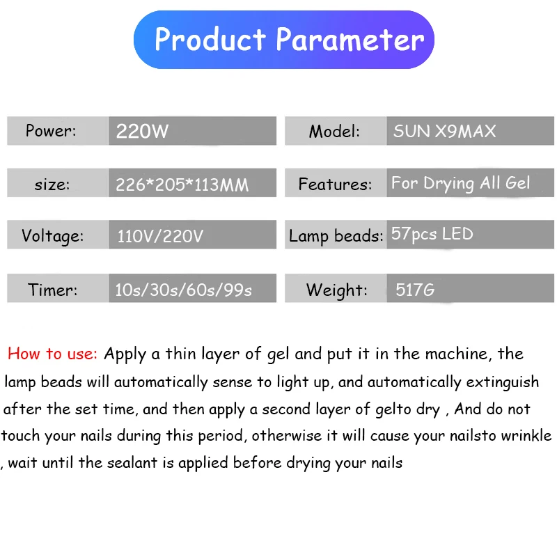Посылка: лампа для ногтей + вилка + руководство по эксплуатации