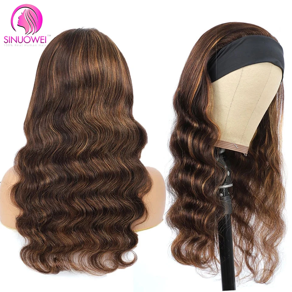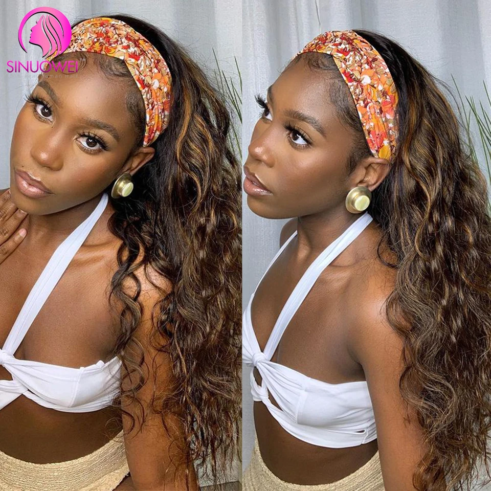 Выделите волнистый парик с головной повязкой, человеческие волосы, Омбре, медовый блонд, головная повязка, человеческие волосы, парик для черных женщин, бразильские волосы Remy