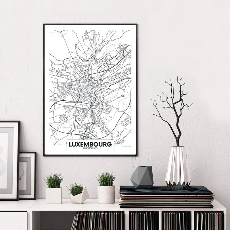 Черно-белая комнатная декорация карта городов мира Холст Картина на...