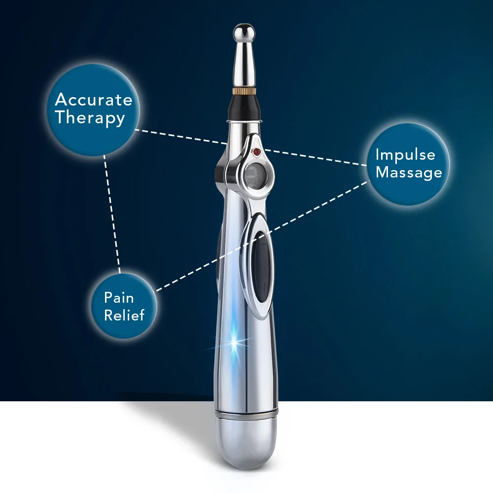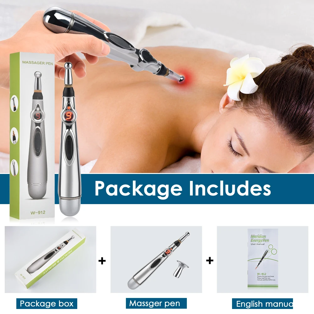 Иглоукалывание без необходимости. Нет иглы, поэтому нет пирсинга. Просто нажмите ручку на пораженные области, и она выпустит электрический пульс, чтобы стимулировать Меридиан и акупунктурные точки в вашем теле для исцеления и облегчения боли.