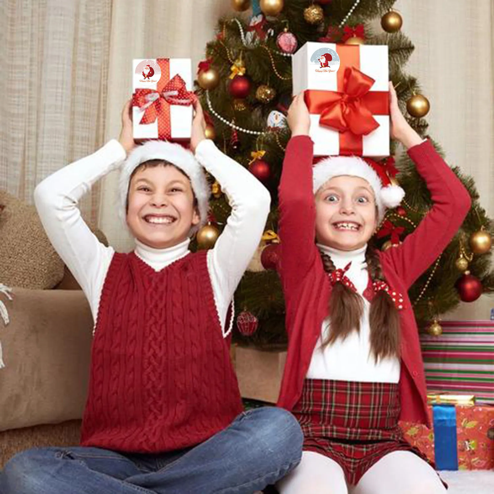 Рождественские наклейки 500 постолов, Санта-Клаус, счастливые лица,...