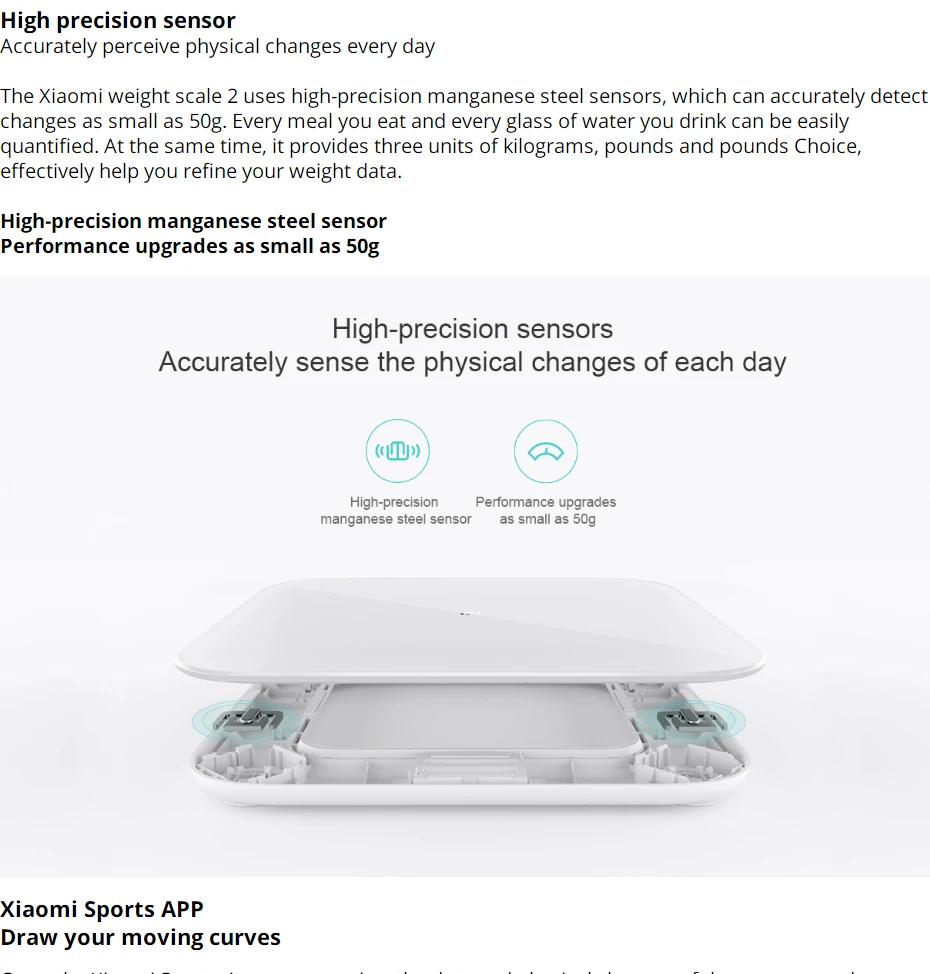Высокая точность с серией сложных алгоритмов для получения точной статистики; В дополнение к весу тела он также может рассчитать ИМТ и тип тела