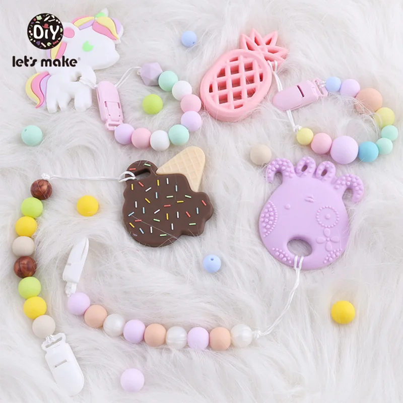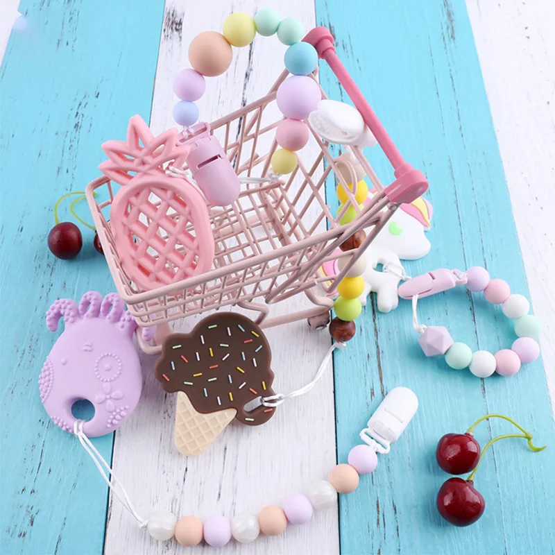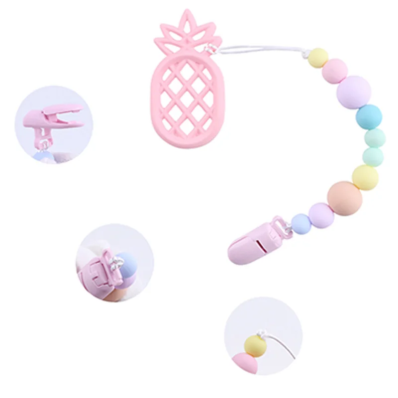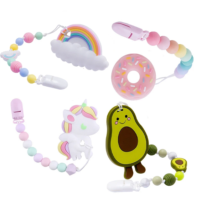 Мультяшные зажимы для соски-прорезывателя, силиконовые бусины для прорезывания зубов, пищевой силикон
