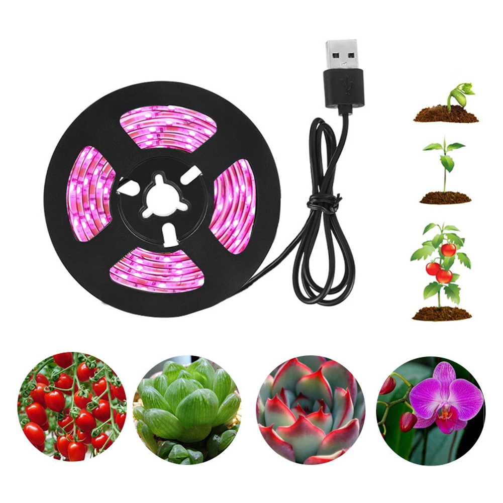 USB-фитолампа полного спектра, светодиодный фитолампа, гибкая водонепроницаемая лента для растений, 5 В