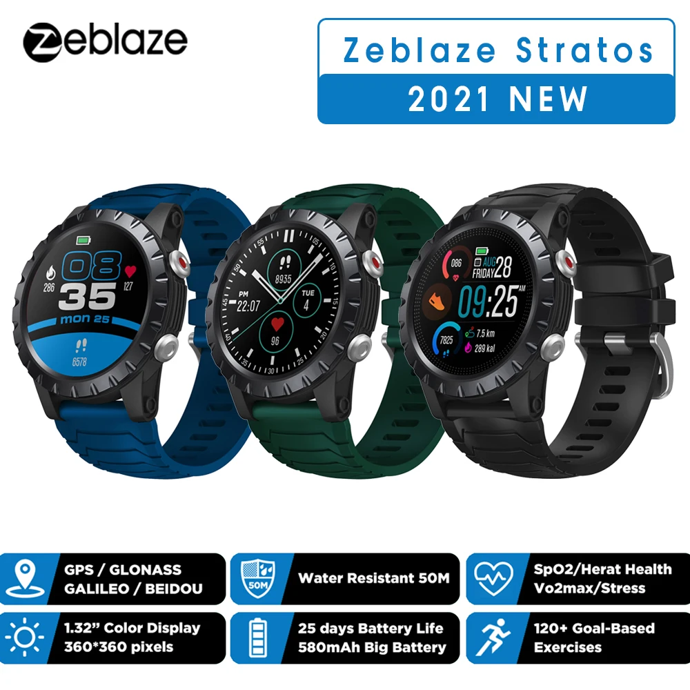 Смарт-часы Zeblaze Stratos, спортивные, водонепроницаемые, GPS, пульсометр, SpO2, VO2max, фитнес-трекер, 2021