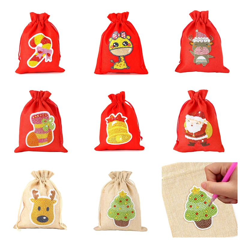 5D DIY Diamond Painting Gift Bag Mosaic Special Shape Drill Cartoon Diamond Embroidery Art Candy Storage Bag Christmas Gift