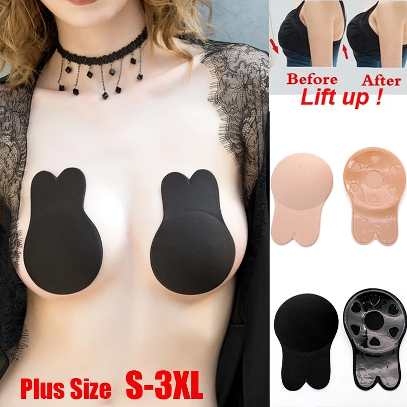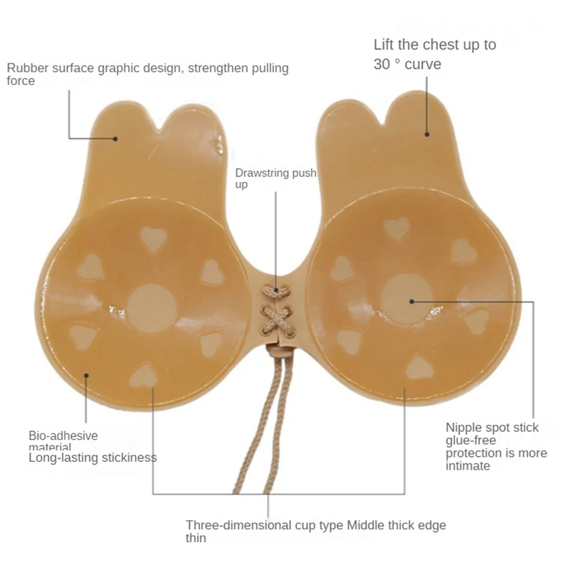 Невидимый бюстгальтер без бретелек, Многоразовые липкие ленты для подтяжки груди, Обложка для сосков с кроликом, подкладки для бюстгальтера, женские бюстгальтеры пуш-ап, самоклеящиеся силиконовые